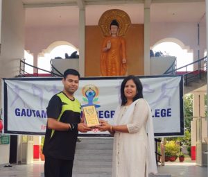 गौतम बुद्ध महाविद्यालय के प्रांगण में आज प्रात:काल प्राचार्या डॉ रश्मि शर्मा के संयोजन में आचार्य सौरभ उपाध्याय ने विद्यालय के छात्र-छात्राओं, प्रवक्ताओं और कर्मचारियों को सभी प्रकार के योग एवं ध्यान का अभ्यास करवाया, जिसमें श्वांस-प्रश्वास, आसनों को सरलता से करने के तरीके और योग के महत्व को भी बताय गया। कार्यक्रम में डॉ रश्मि शर्मा ने योग आचार्य सौरभ उपाध्याय को पुष्प गुच्छ, अंग वस्त्र एवं स्मृति चिन्ह भेंट कर गौतम बुद्ध स्मृति सम्मान से सम्मानित किया।