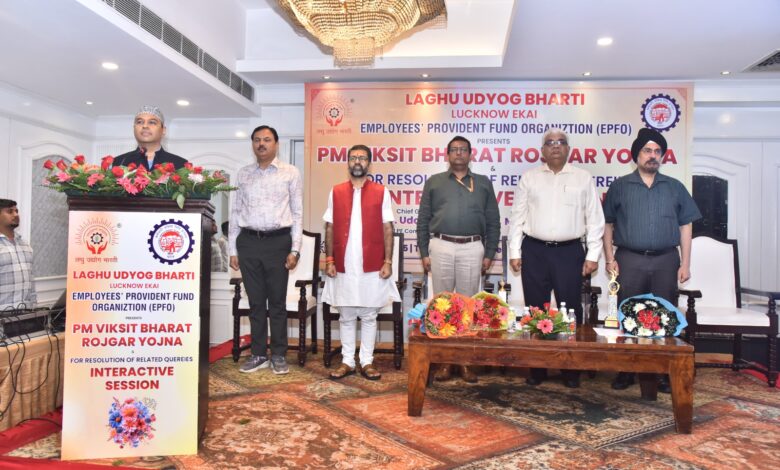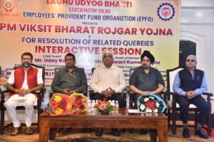 लघु उद्योग भारती लखनऊ इकाई द्वारा भारत सरकार की ’’प्रधानमंत्री विकसित भारत रोजगार योजना’’ के अन्तर्गत स्वीकृत इम्पलाइमेंट लिंक्ड इनसेंटिव योजना की जानकारी जिले के सभी उद्यमियों को उपलब्ध कराने के उद्देश्य से कर्मचारी भविष्य निधि संगठन (भारत सरकार श्रम और रोजगार मंत्रालय) के सहयोग से होटल क्लार्क अवध में उद्यमियों की संगोष्ठी का आयोजन किया गया।